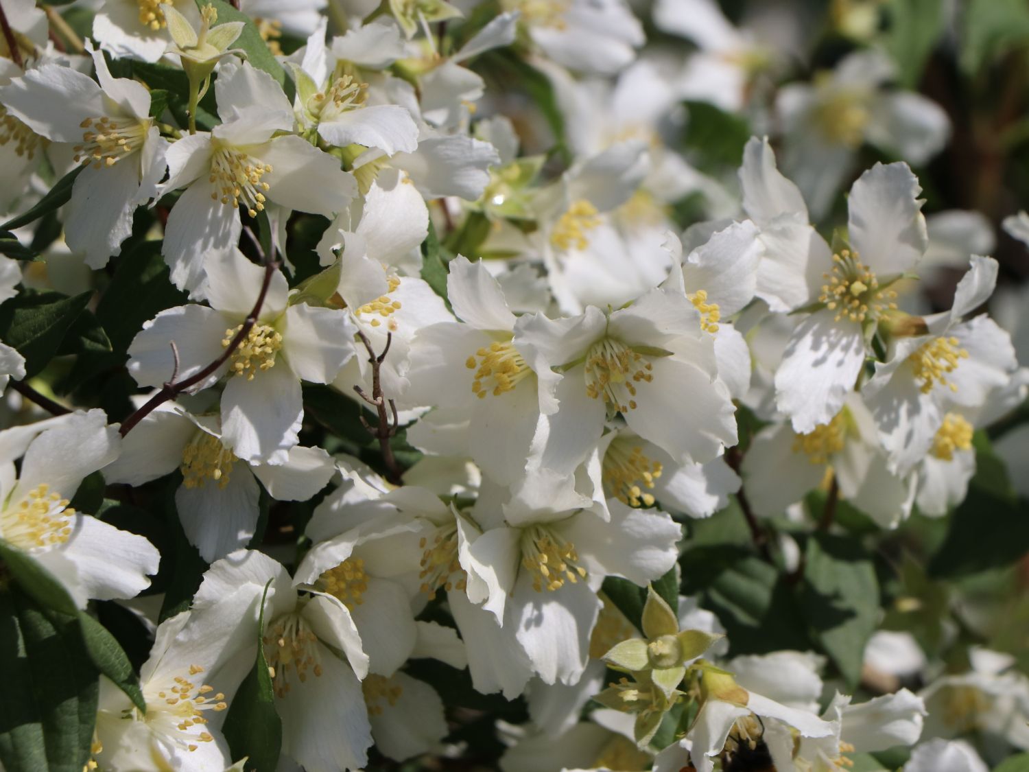 Der falsche jasmin hört auch auf die namen bauernjasmin oder pfeifenstrauch.
